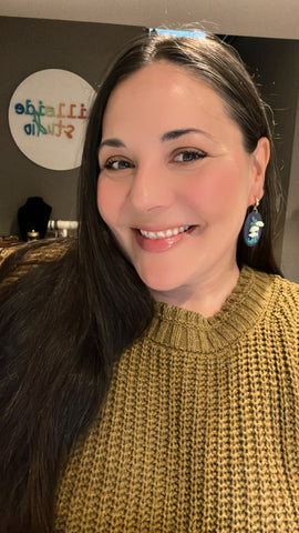 An oval polymer base is decorated with a 3D mushrooms, moss, and leaves, and hung from gold-plated stainless steel hoop studs. Hardware can be switched out to silver if preferred, just leave a note in the box at checkout.