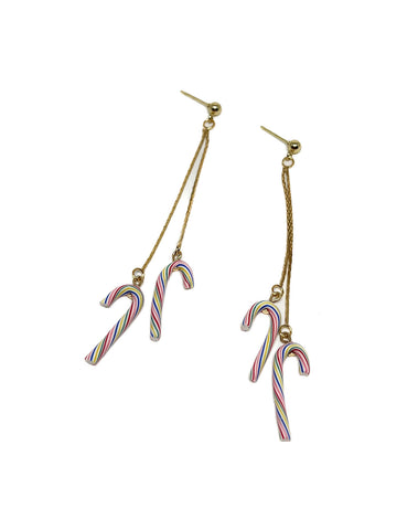 Each candy cane is handcrafted and hung from high quality gold plated or stainless steel chain and attached to gold or silver-plated ball posts. The earrings hang approximately 3 inches.