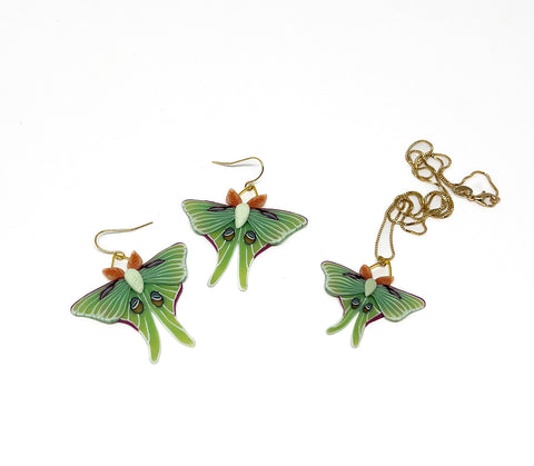 The large moths are hung from gold plated stainless steel ear hooks and each are approximately 2 inches long.